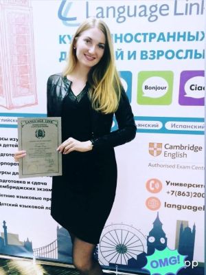 Окончила курсы преподавателей иностранных языков (г. Санкт-Петербург) в частной компании «Ирис» (сентябрь-декабрь 2016 г.).